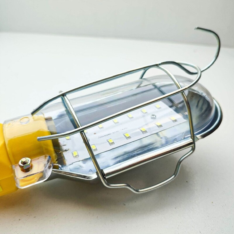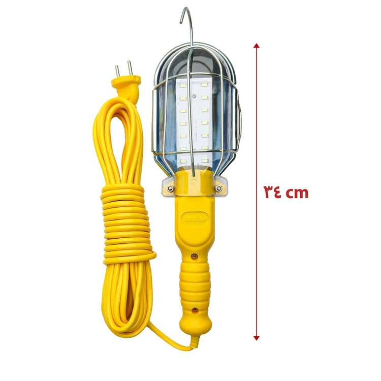 وجود نور کافی در هنگام تعمیرات و انجام کارهای فنی اهمیت زیادی دارد. یکی از راههای تامین نور در چنین شرایطی که دسترسی به نور طبیعی امکانپذیر یا کافی نیست، استفاده از چراغهای سیار است. محصول فوق یکی از نمونههای این چراغها بوده که به دلیل ویژگیهای متعددش، کاربردهای فراوانی دارد. این چراغ سیار دارای کابل برقی 5متری است. این طول کابل موجب میشود تا بتوانید چراغ را به فاصلهای دورتر از پریز برق منتقل کرده و روشنایی موردنیاز خود را تامین کنید. برای استفاده از این محصول باید پریز را به برق زده و با کلید خاموش روشن نمایید وجود یک صفحهی فلزی در قسمت پشتی لامپ موجب میشود تا نور آن بهشکل متمرکزتری روی سطح موردنظر تابیده شود. در اطراف لامپ نیز میلههای فلزی محافظی وجود دارد تا احتمال برخورد لامپ با سطوح دیگر کاهش یابد. بهمنظور روشن و خاموشکردن لامپ درون چراغ، یک کلید در قسمت بالایی دسته طراحی شده است. این چراغ را میتوانید در دست بگیرید یا با آویزانکردنش، از نور آن استفاده کنید.