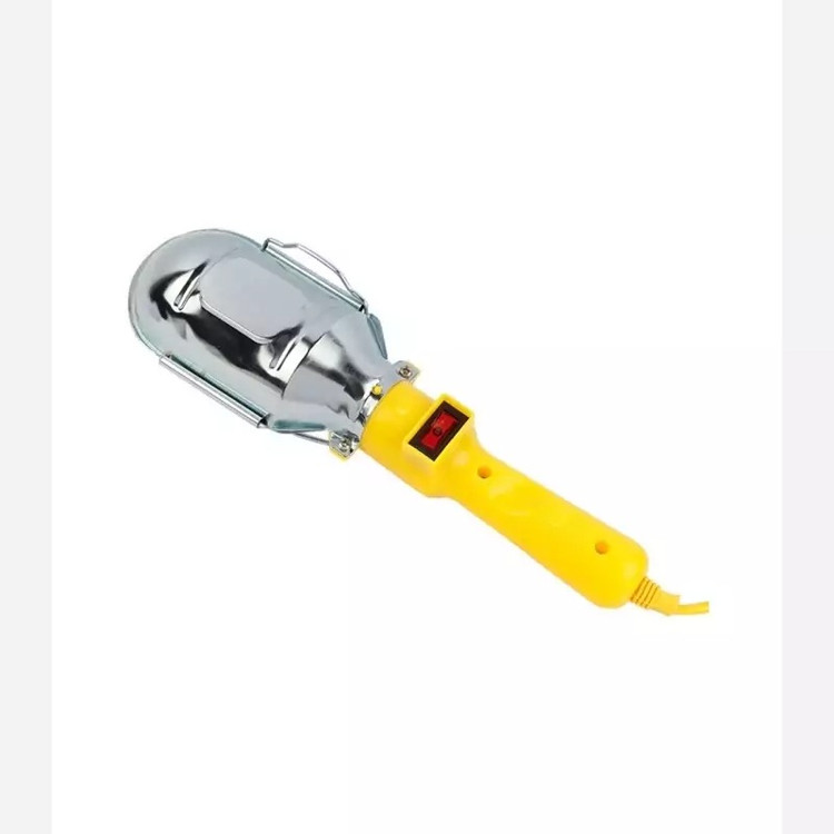 وجود نور کافی در هنگام تعمیرات و انجام کارهای فنی اهمیت زیادی دارد. یکی از راههای تامین نور در چنین شرایطی که دسترسی به نور طبیعی امکانپذیر یا کافی نیست، استفاده از چراغهای سیار است. محصول فوق یکی از نمونههای این چراغها بوده که به دلیل ویژگیهای متعددش، کاربردهای فراوانی دارد. این چراغ سیار دارای کابل برقی 10متری است. این طول کابل موجب میشود تا بتوانید چراغ را به فاصلهای دورتر از پریز برق منتقل کرده و روشنایی موردنیاز خود را تامین کنید. برای استفاده از این محصول باید یک لامپ با پایهی E27 درون آن قرار دهید. وجود یک صفحهی فلزی در قسمت پشتی لامپ موجب میشود تا نور آن بهشکل متمرکزتری روی سطح موردنظر تابیده شود. در اطراف لامپ نیز میلههای فلزی محافظی وجود دارد تا احتمال برخورد لامپ با سطوح دیگر کاهش یابد. بهمنظور روشن و خاموشکردن لامپ درون چراغ، یک کلید در قسمت بالایی دسته طراحی شده است. این چراغ را میتوانید در دست بگیرید یا با آویزانکردنش، از نور آن استفاده کنید.