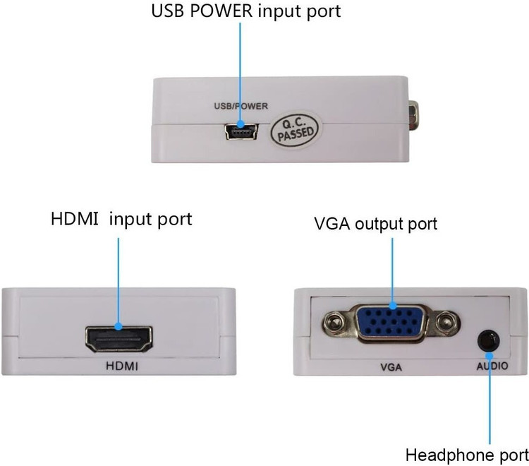 باید توجه کرد که پورت آنالوگ VGA تنها توانایی جا به جایی دادههای تصویری را دارد و صدا را انتقال نمی دهد، ولی فناوری HDMI توانایی انتقال همزمان صدا و تصویر را دارد. در نتیجه ورودی صدا AUX روی دستگاه مبدل وظیفهی انتقال داده های صدا و صوتی را بر عهده دارد.