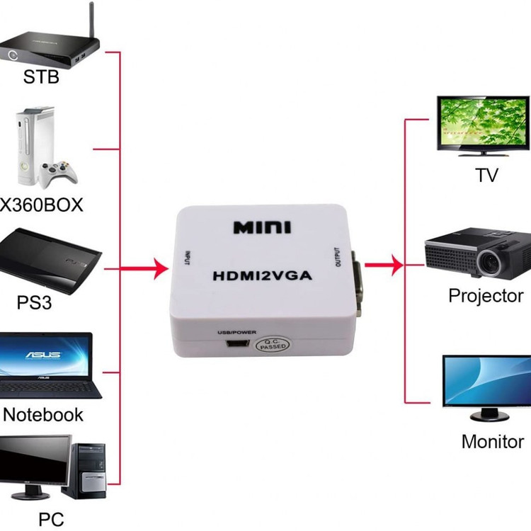 در لپ تاپ ها و کیسهای قدیمی کامپیوتر تنها خروجی VGA که با کابل VGA به مانیتور وصل میشد وجود دارد. بنابراین در صورتی که نیاز باشد تصویر لپ تاپ یا کیس را روی تلویزیون های جدید با ورودی HDMI ببینم باید از این دستگاه به عنوان مبدل و ارتباط دهنده میان آن ها استفاده کنید.